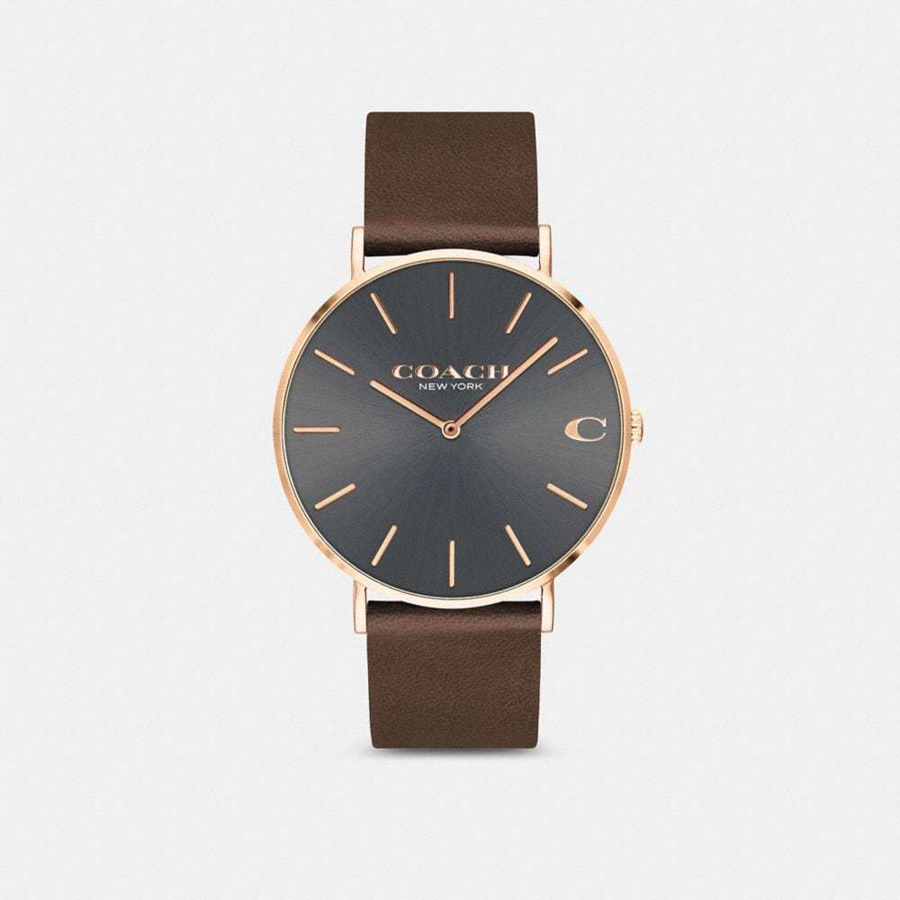 Rose gold tone case and mahogany leather strap