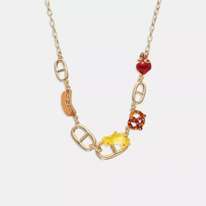 Paying tribute to the effortless cool of our hometown, this chunky statement necklace is detailed with a playful array of New York City staples. Featuring oversized links borrowed from our bags, it adjusts in length to wear long or short.