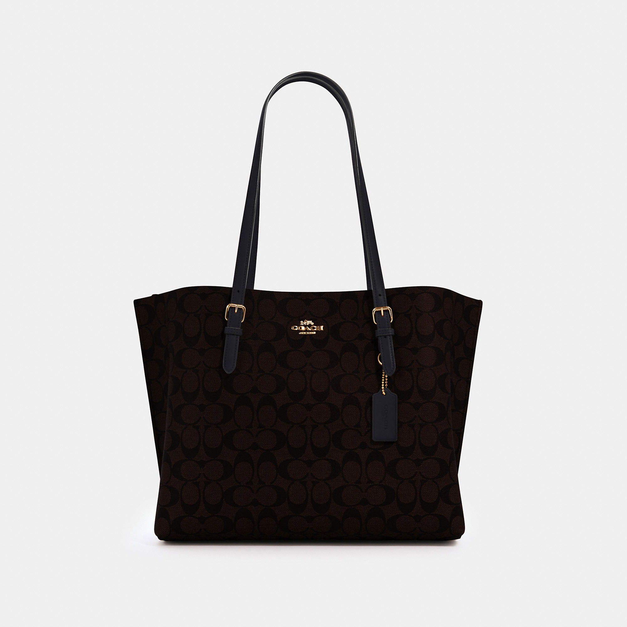 Signature coated canvas and smooth leather Inside multifunction pocket Zip-top closure fabric lining Handles with 10 1/4 drop Side open compartments 13 1/4 (L) x 11 (H) x 5 (W) Style No. 1665