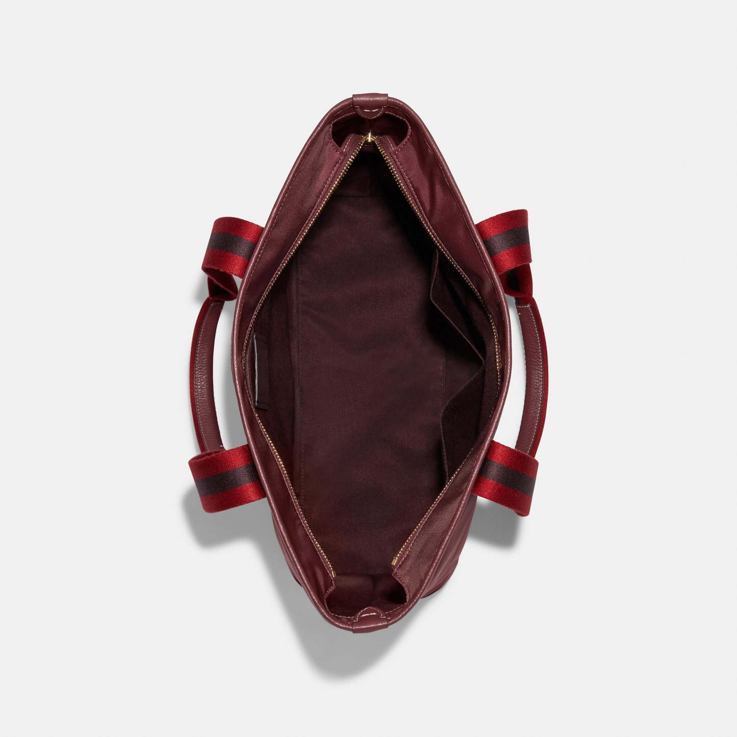 Recycled nylon twill and refined pebble leather Inside zip and multifunction pockets Zip-top closure fabric lining Handles with 10 1/4 drop Outside open pockets 14 1/4 (L) x 10 1/4 (H) x 6 (W) Style No. CA208 | Outlet Ellis Tote - Red