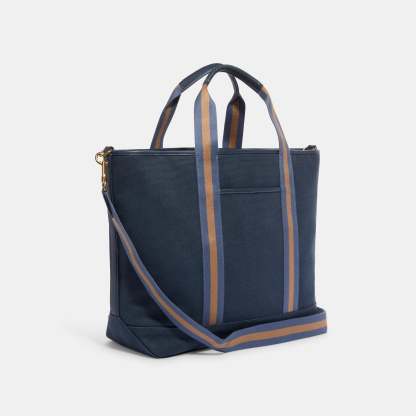 Canvas and refined pebble leather Inside zip and multifunction pockets Zip-top closure fabric lining Handles with 6 drop Outside open pockets Detachable strap with 15 1/4 drop for shoulder or crossbody wear 14 1/4 (L) x 13 1/2 (H) x 6 1/4 (W) Style No. CA627 | Outlet Ellis Weekender - Blue