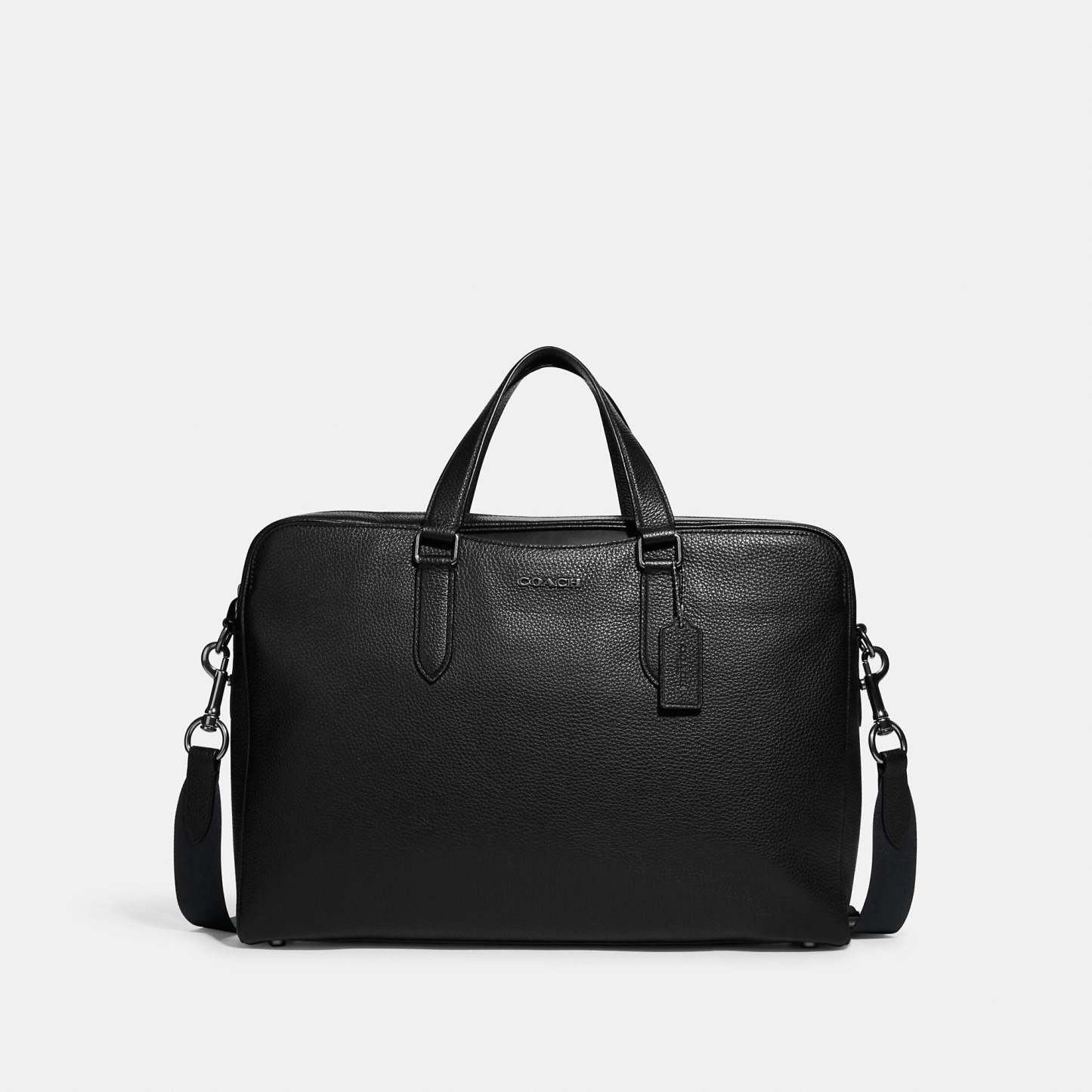 Refined pebble leather Four credit card slots Inside zip and multifunction pockets Inside laptop sleeve with secure tab Zip closure fabric lining Handles with 5 drop Outside snap pockets Detachable strap with 25 drop for shoulder or crossbody wear Four protective feet at base 15 1/2 (L) x 11 (H) x 3 1/4 (W) Style No. C8174