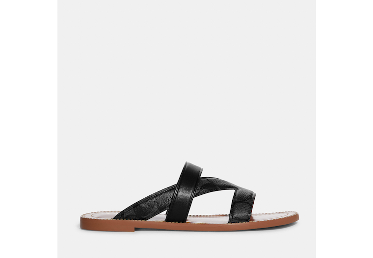 Signature coated canvas and leather upper Man-made leather lining and footbed Rubber outsole Slip on 1/4 heel Style No. CA363