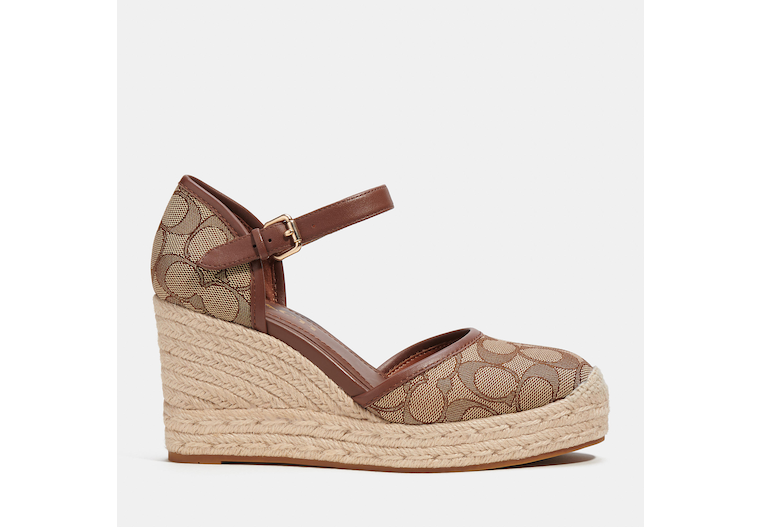 Signature jacquard and leather upper Man-made leather lining and footbed Rubber outsole Buckle closure 2 1/4 heel This piece is crafted of our Signature jacquard made from a blend of organic cotton and recycled polyester Style No. C8911 | Outlet Raine Espadrille In Signature Jacquard - Beige, Size - 9.5