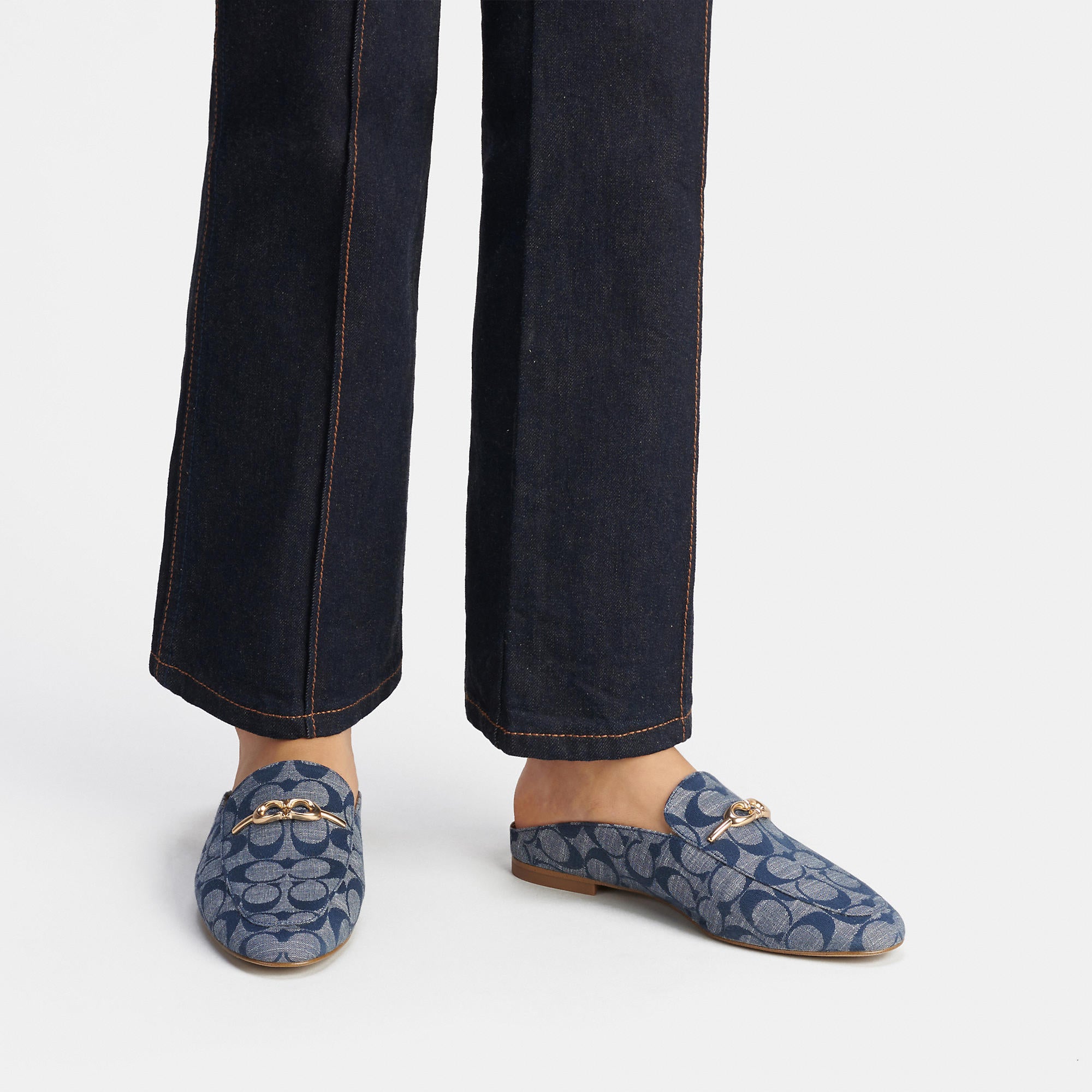 Signature chambray Man-made leather lining and footbed Rubber outsole Slip on 1/4 heel Style No. C9453