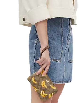 Coathtch Corner Zip Wristlet In Signature Canvas With Banana Print