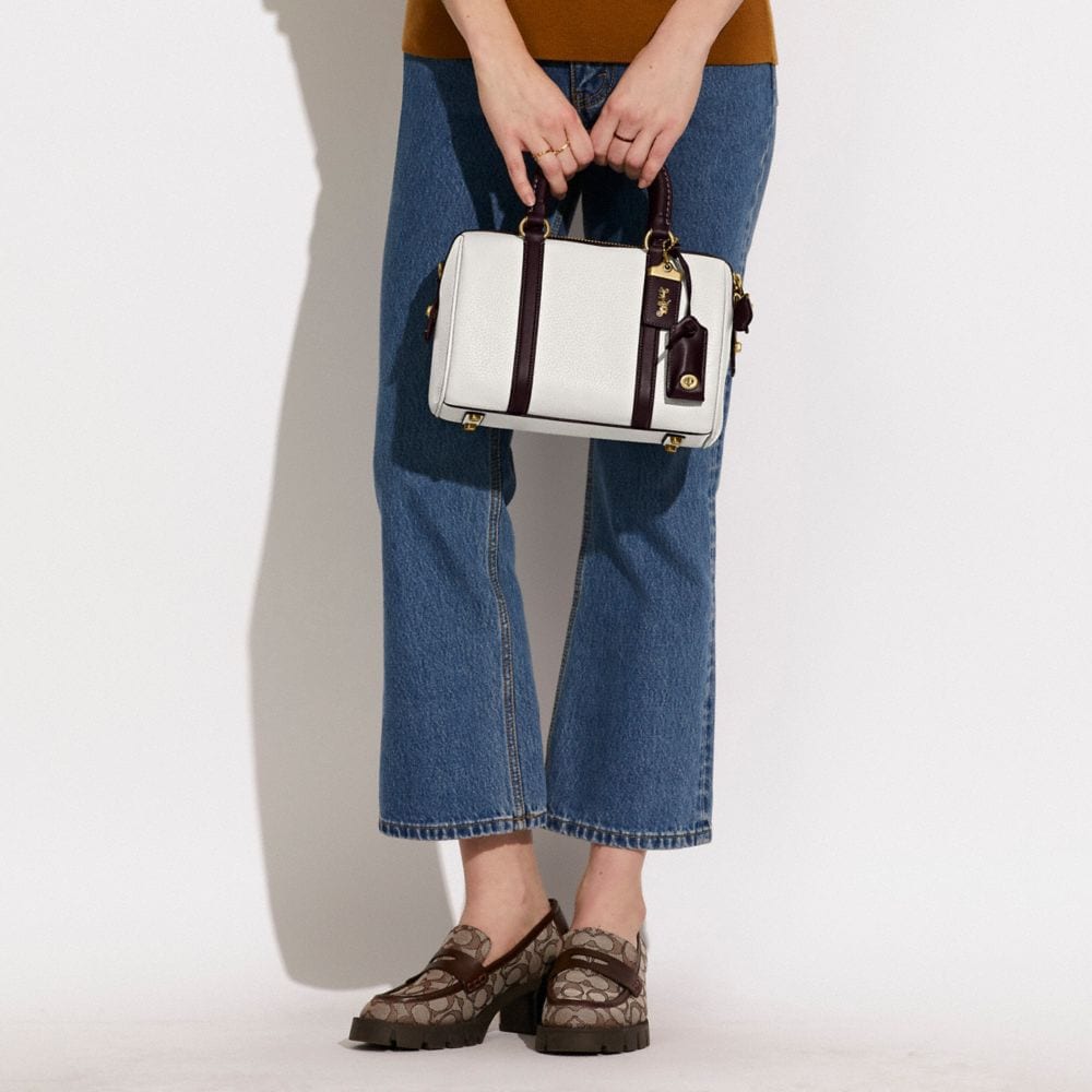 Detachable strap with 21 1/2" drop for shoulder or crossbody wear
