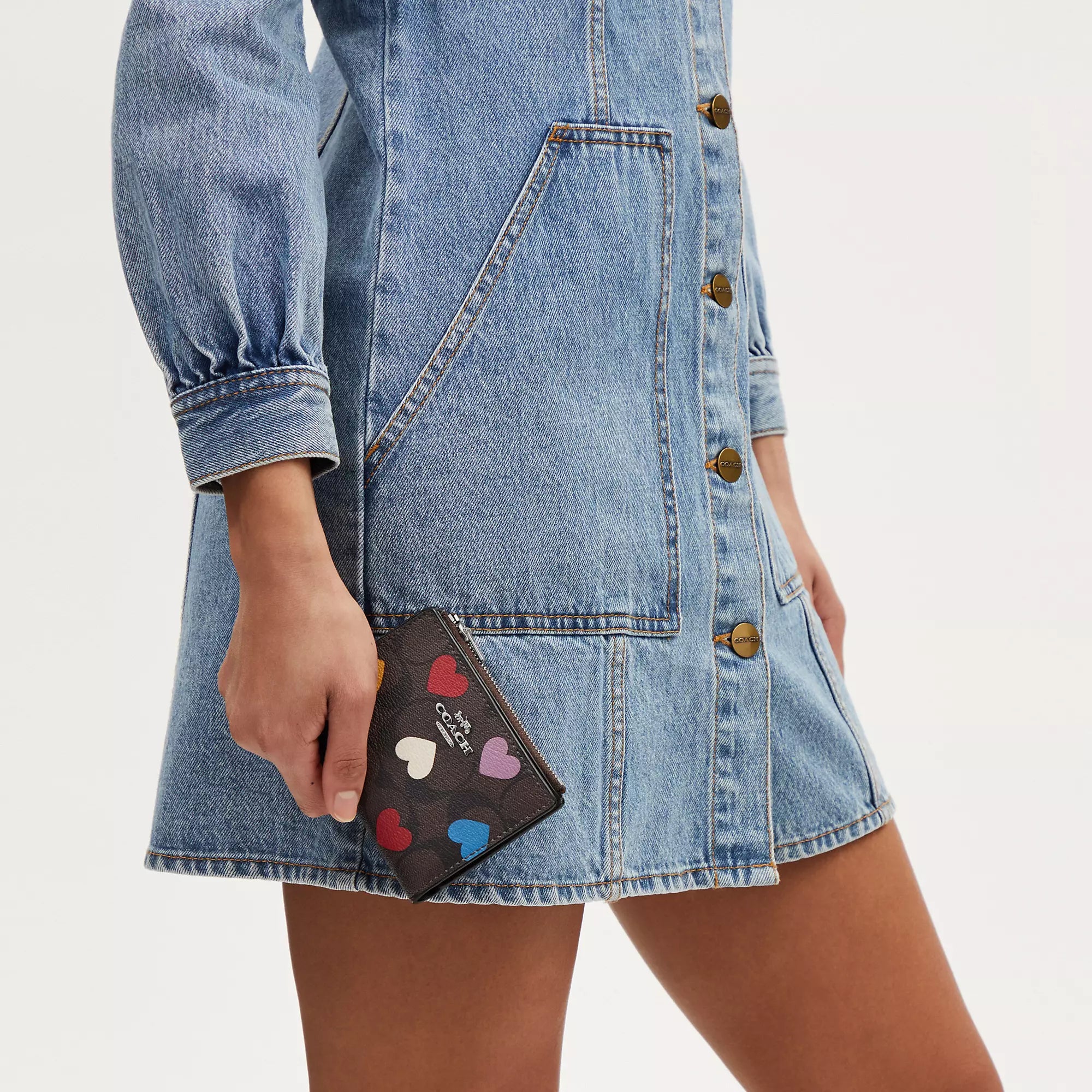 Signature coated canvas and smooth leather Six credit card slots Full-length bill compartment Inside open pockets Snap closure Outside zip coin pocket 4 1/2 (L) x 3 1/2 (H) Style No. CP424 | Outlet Bifold Wallet In Signature Canvas With Heart Print - Brown
