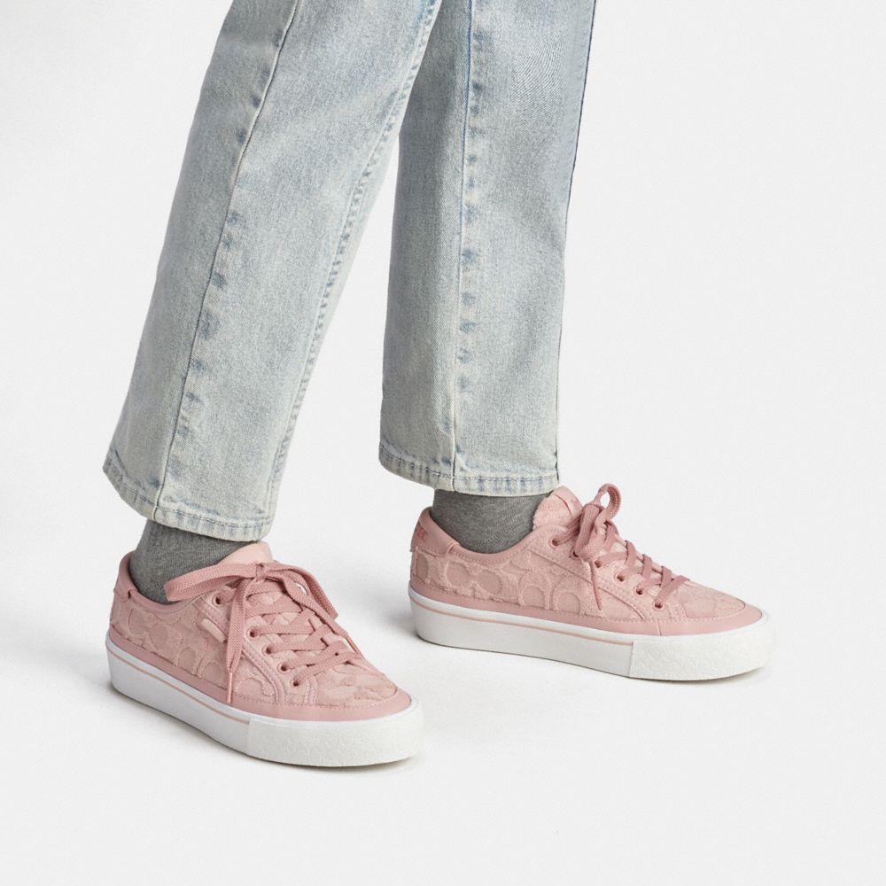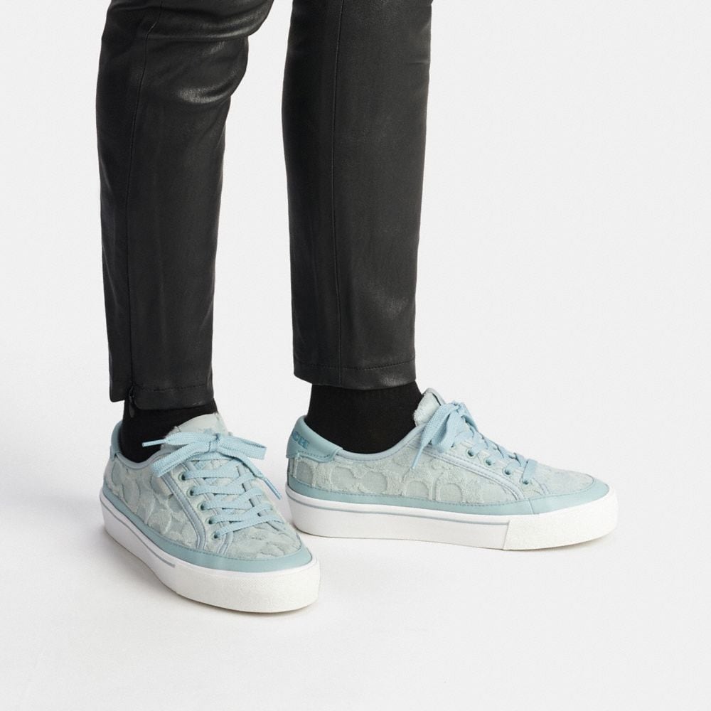 Signature terry cloth, man-made leather and leather upper