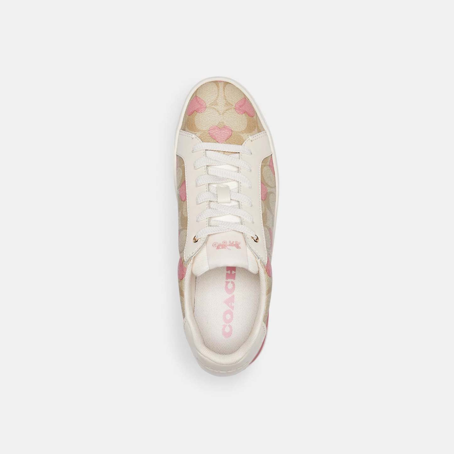 Signature coated canvas and leather upper Fabric lining and footbed Rubber outsole Lace-up closure Style No. CP871 | Outlet Clip Low Top Sneaker In Signature Canvas With Hearts - Beige, Size - 5.5